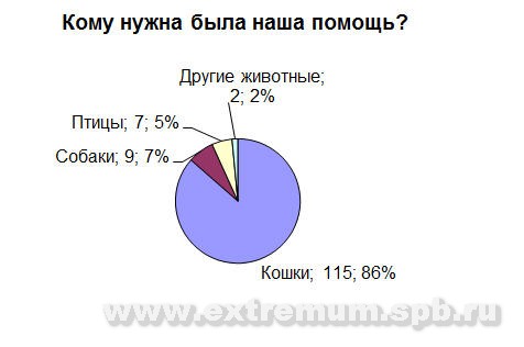 К сожалению, были и потери.. Котенок из подземного кабельканала на ул. Кораблестроителей, кот в стеклопакете, голубь, запутавшийся в нитке на дереве, собака, которая пыталась из Фонтанки выбраться на лед, но практически сразу, после звонка заявителя, у нее кончились силы, и она ушла под лед.. И, наверное, сюда же нужно отнести собаку, пролежавшую два дня на ж/д путях..
