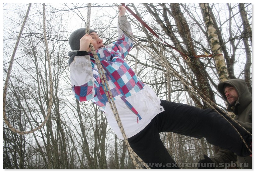 http://www.parketnik-country.ru/node/3521 8 марта спасатели Экстремум приняли участие в обеспечении безопасности и организации веревочного этапа для участников Внедорожного Женского Дня — ежегодного мероприятия, проводимого под эгидой «Паркетник-Кантри». На этапе, организованном Экстремум, участницы и участники ВЖД 2015 должны были за 5 минут преодолеть 2 препятствия — «петли» и «путанку». Первая часть требовала ловкости и незаурядного чувства равновесия, вторая же часть заставила одного из членов каждой команды проявить недюжинную изворотливость, о чём красноречиво рассказывают фотографии. Надо отдать должное экипажам — с этапом справились все!